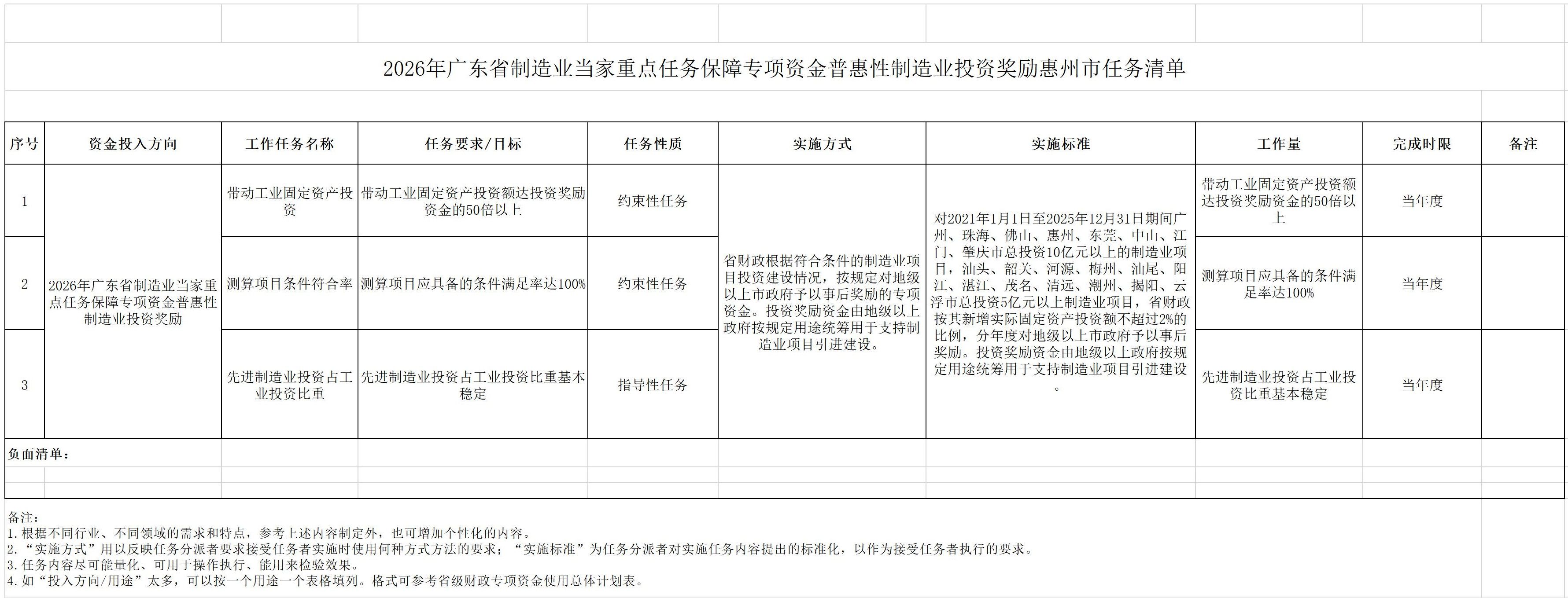 3.2026年广东省制造业当家重点任务保障专项普惠性制造业投资奖励资金区域任务清单
