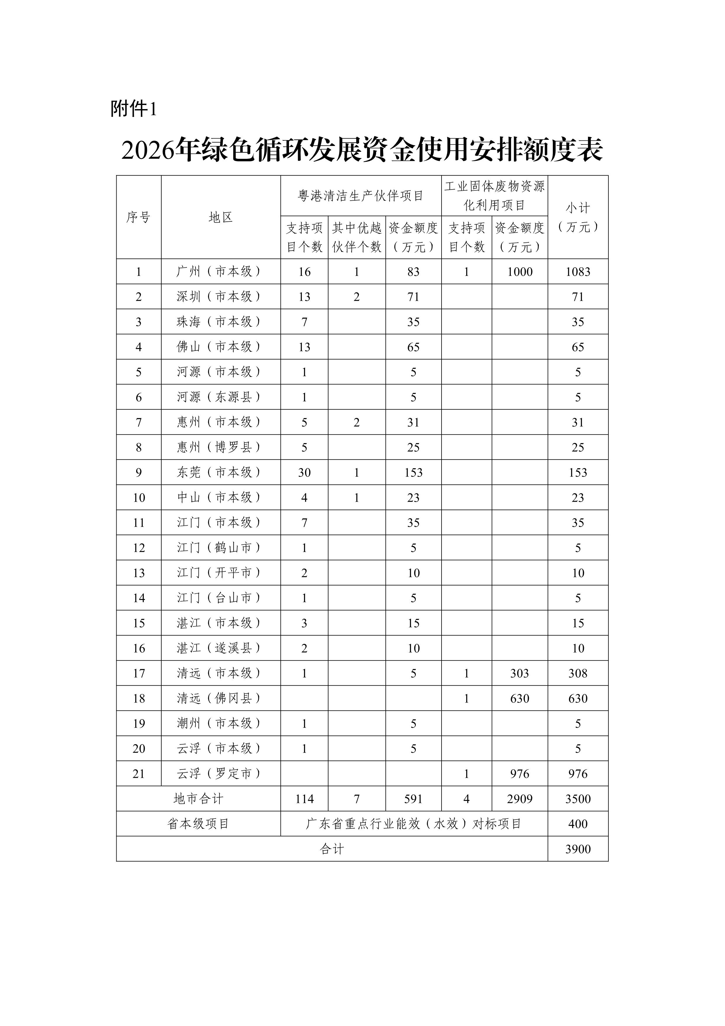 1.2026年绿美广东生态建设重点任务保障专项资金(绿色循环发展)使用安排额度表